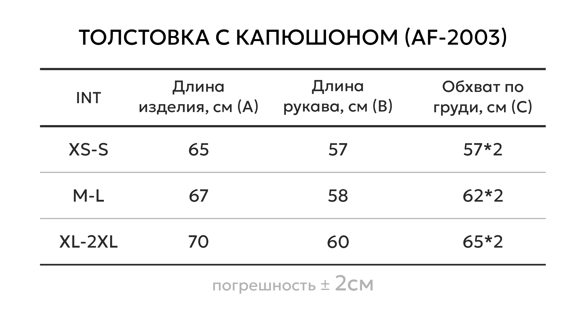 Таблица размеров