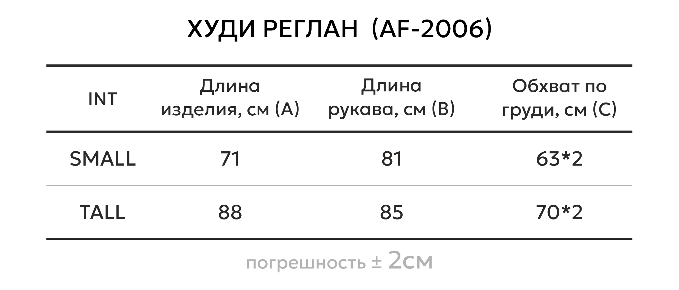 Таблица размеров