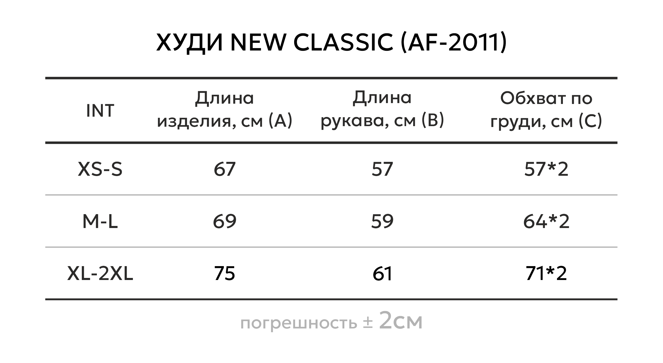 Таблица размеров