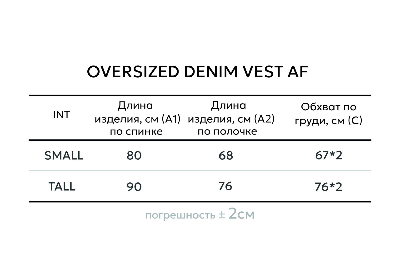 Таблица размеров
